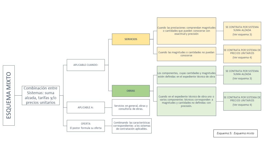 Esquema 5 elaborado con base en: Ministerio de economía y finanzas; 2018; Ley de Contrataciones del Estado; Reglamento de la Ley N° 30225; Artículo 35: Sistemas de contratación;  Numeral c) Esquema mixto; Página 8.