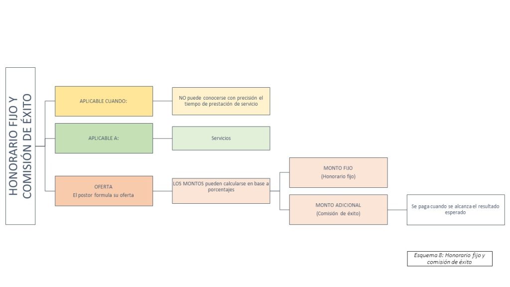 Esquema 8 elaborado con base en: Ministerio de economía y finanzas; 2018; Ley de Contrataciones del Estado; Reglamento de la Ley N° 30225; Artículo 35: Sistemas de contratación;  Numeral f) Honorario fijo y comisión de éxito; Página 9.