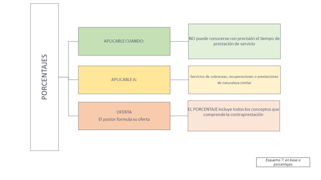 Esquema 7 elaborado con base en: Ministerio de economía y finanzas; 2018; Ley de Contrataciones del Estado; Reglamento de la Ley N° 30225; Artículo 35: Sistemas de contratación;  Numeral e) En base a porcentajes; Página 9