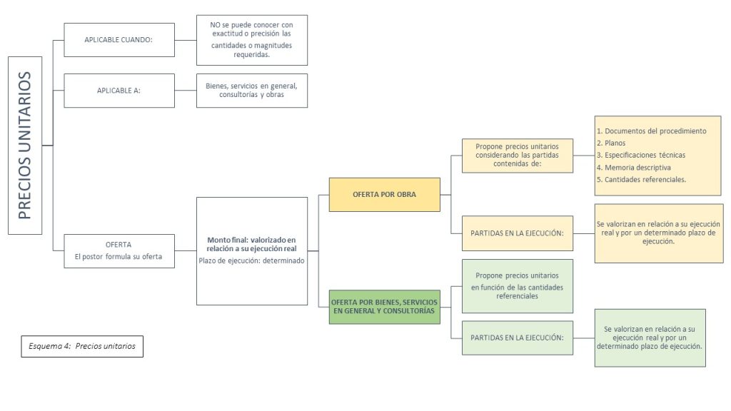 Esquema 4 elaborado con base en: Ministerio de economía y finanzas; 2018; Ley de Contrataciones del Estado; Reglamento de la Ley N° 30225; Artículo 35: Sistemas de contratación;  Numeral b) Precios unitarios; Página 8.