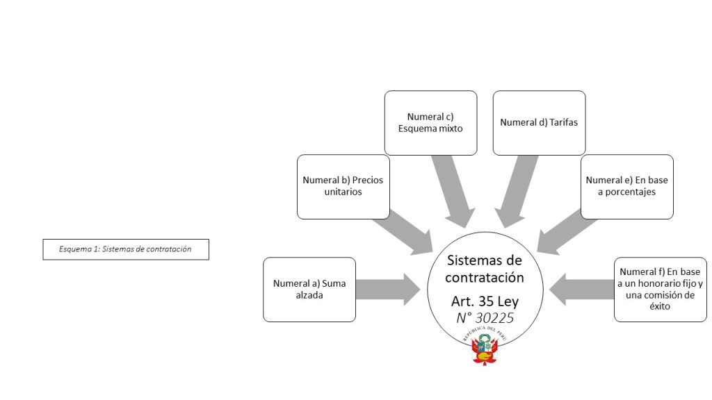 Los esquemas 1 y 2 han sido elaborados con base en: Ministerio de economía y finanzas; 2018; Ley de Contrataciones del Estado; Reglamento de la Ley N° 30225; Artículo 35: Sistemas de contratación; Página 8.