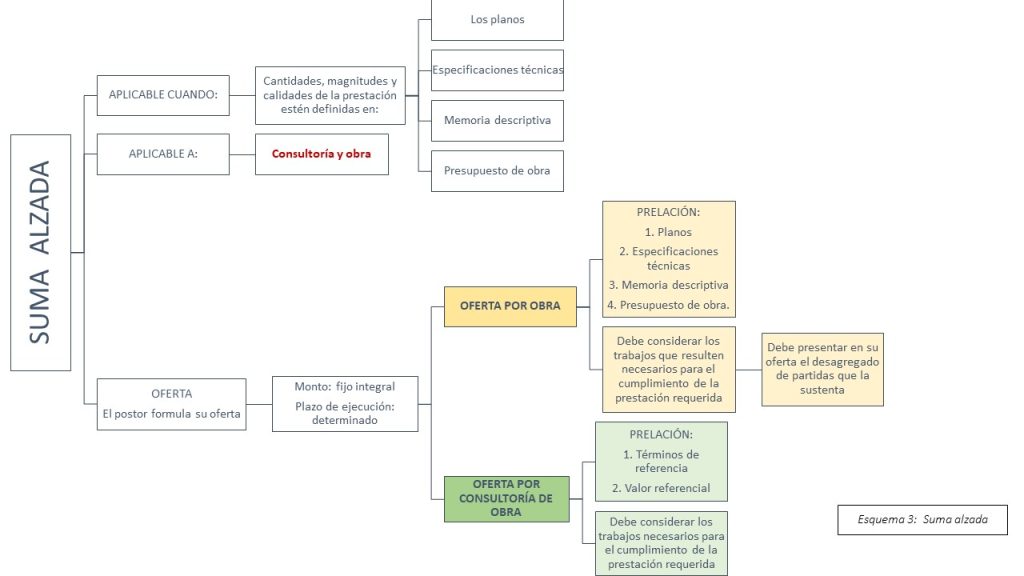 Esquema 3 elaborado con base en: Ministerio de economía y finanzas; 2018; Ley de Contrataciones del Estado; Reglamento de la Ley N° 30225; Artículo 35: Sistemas de contratación;  Numeral a) Suma alzada; Página 8.