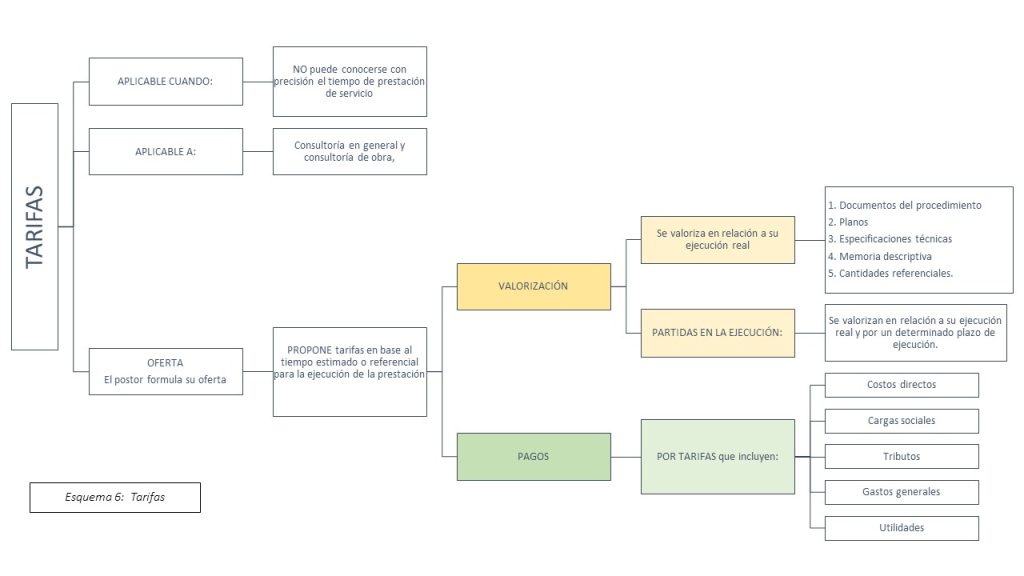 Esquema 6 elaborado con base en: Ministerio de economía y finanzas; 2018; Ley de Contrataciones del Estado; Reglamento de la Ley N° 30225; Artículo 35: Sistemas de contratación;  Numeral d) Tarifas; Página 9